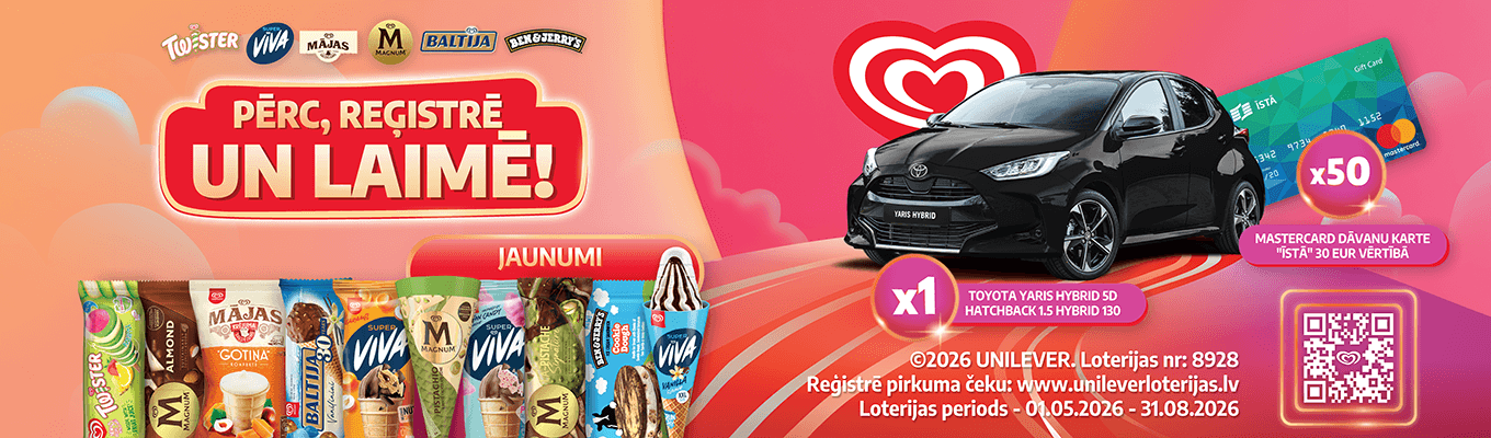 7.1. Par loterijas dalībnieku kļūst ikviens Twister, Super Viva, Magnum, Ben&Jerry’s, Baltija, Mājas, Calippo, Volcanixx, Minecraft vai Algida saldējuma zīmola preces pircējs, kurš: